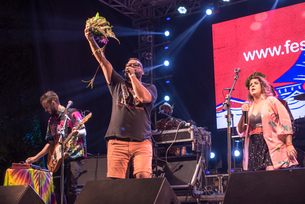 Já são cerca de 22h e agora a Nauro Machado recebe o show do baiano Lucas Santtana, que lançou há pouco o Modo Avião (2017). Chama atenção que, se por um lado o disco novo aponta um caminho mais reflexivo e introspectivo, o show dele não está seguindo essa linha. A apresentação é pra cima, animadíssima, caminhando entre o samba, as sonoridades nordestinas e a música eletrônica. Durante músicas como “Amor de Carnaval”, parceria de Lucas gravada por Pedro Mann, o baiano chega a descer do palco para agitar o povo. Paralelamente, no Palco Spotify, a banda maranhense Soulvenir faz uma apresentação bonita onde apresenta seu pop rock indie folk, que contempla a parte do público que talvez não esteja tão ávida por garantir um bom lugar para a apresentação seguinte do palco principal: Pinduca.