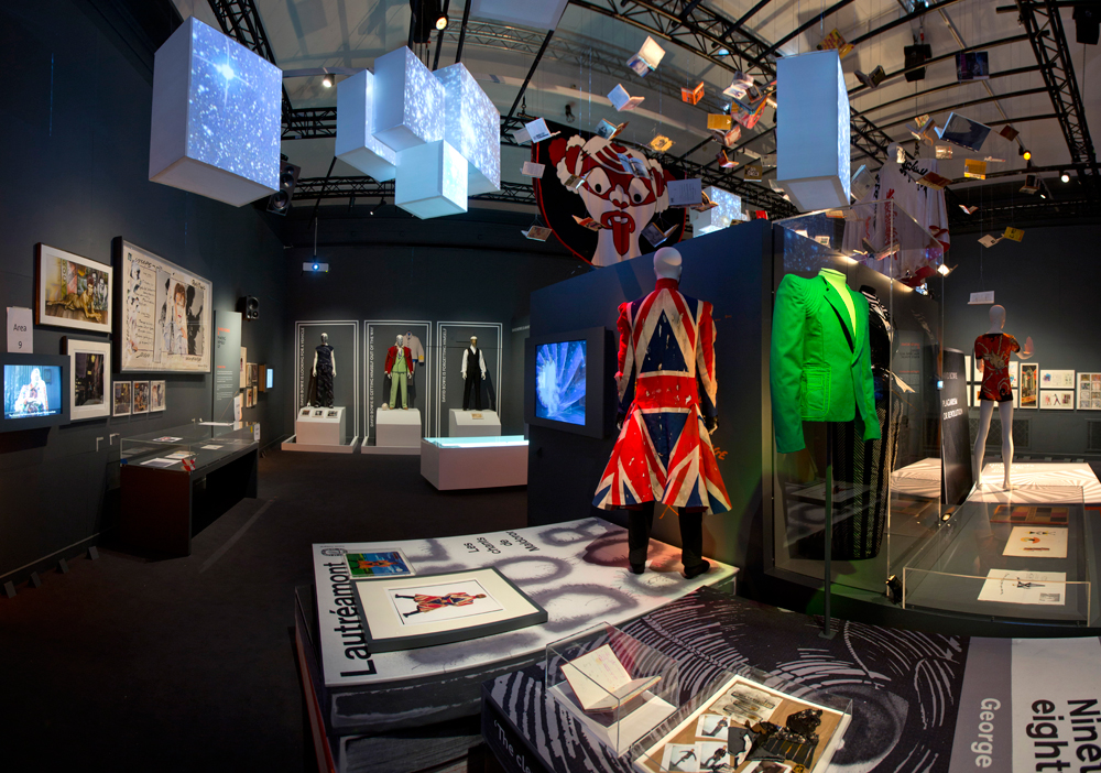 Na exposição, além da música, cinema e moda também entram na trilha de Bowie. Estarão expostos figurinos como o terno azul-claro usado na gravação do curta feito para a música “Life on Mars?”, do disco Heroes (1971); a calça e jaqueta multicoloridos de Freddie Burretti usadas na turnê Ziggy Stardust (1972-1973); o macacão assimétrico feito de vinil por Kansai Yamamoto e a bota plataforma vermelha, peças da turnê do disco Aladdin Sane (1973), entre outros. Segundo os curadores da mostra inglesa, Bowie não quis interferir na exposição.